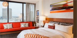 Hotel Derek, Houston's hottest boutique hotel is located in the very fashionable Galleria and River Oaks District. The hotel revels in its split personality: business by day, pleasure by night, corporate digs by workweek, romantic getaway by weekend. By thoughtfully embracing this dual nature, Hotel Derek provides its guests with a chic place to work, play and "Stay In The Loop". The property offers luxury guestrooms and suites, many of which boast views through floor to ceiling windows of the Galleria and downtown skyline. Enjoy dining or sipping craft cocktails at the hip & happening restaurant, Revolve Kitchen + Bar or lounge poolside at Splash.