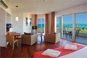 Located opposite the beach and within walking distance from water activities, restaurants and shops. Combining the comfort of a self catering apartment with 4 star hotel service. Spacious and modern with fully equipped kitchens. Offering you a home away from home.